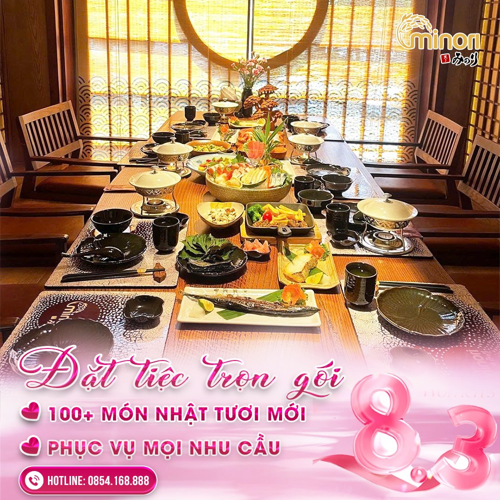 Hiểu được điều đó, Minori mang đến giải pháp tiệc Nhật trọn gói tại gia và tại nhà hàng, giúp bạn tổ chức ngày 8/3 nhẹ nhàng nhưng vẫn thật chỉn chu và đáng nhớ.