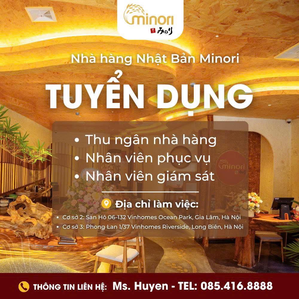 Nhằm đáp ứng nhu cầu mở rộng và nâng cao chất lượng dịch vụ, Nhà Hàng Nhật Bản Minori hiện đang tuyển dụng nhiều vị trí với mức thu nhập cạnh tranh và cơ hội phát triển rõ ràng.